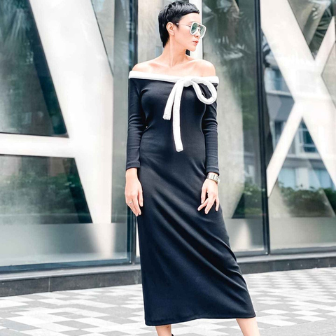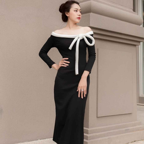 ĐẦM THUN ĐEN NƠ TRẮNG PHOM XÒE - MUSHROOM LEE