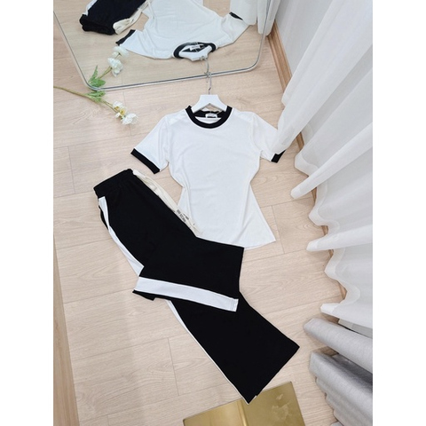 SET BỘ 2 MÓN ÁO THUN NỮ MÀU TRẮNG KÈM QUẦN ỐNG RỘNG PHỐI KẺ TRẮNG - DIEPCHI FASHION